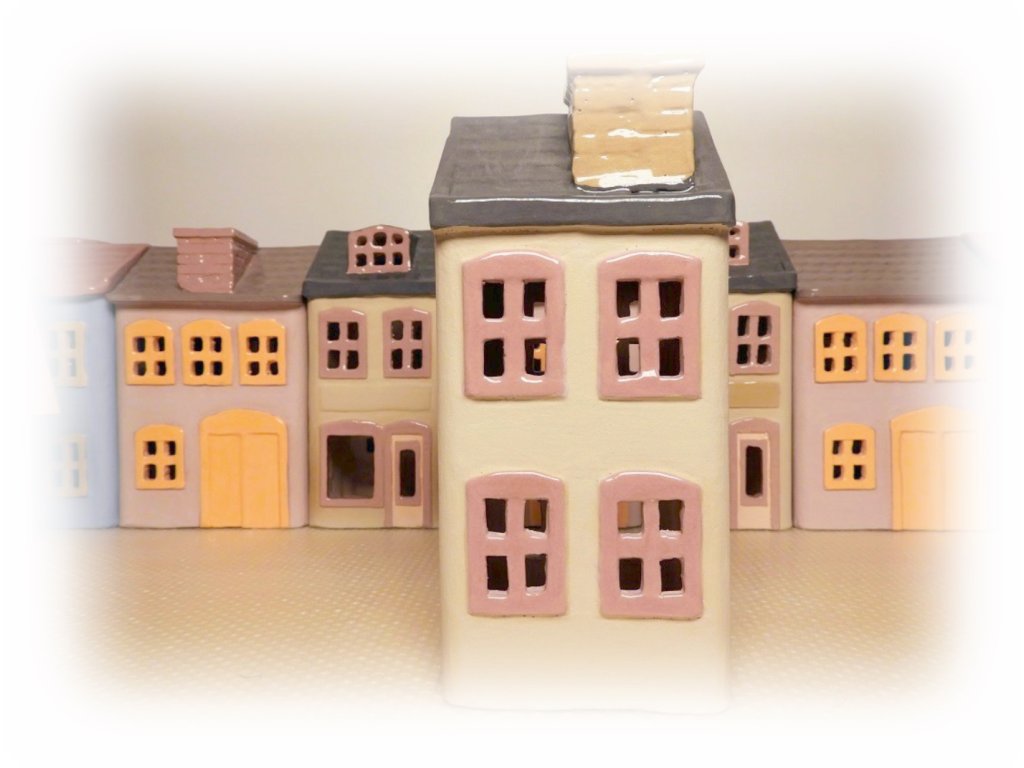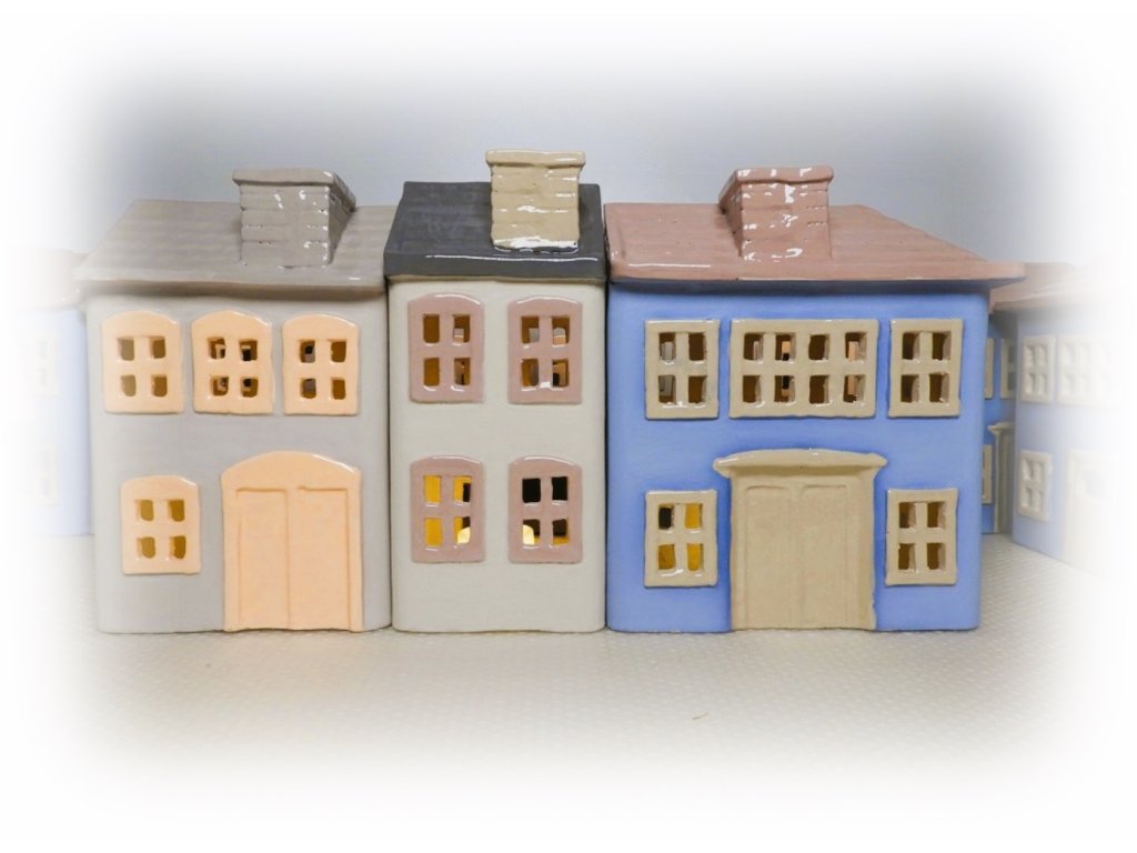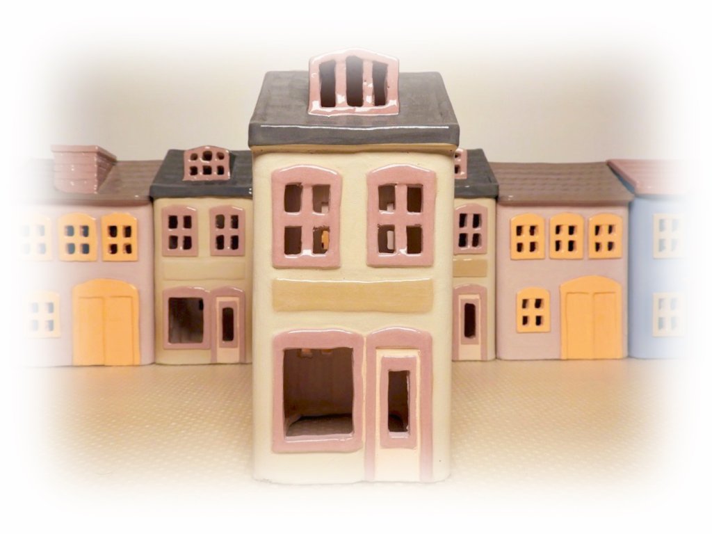 Keramický, ručně vyráběný a barvený, domeček "Dům s vikýřem" . Svícen na LED nebo běžnou čajovou svíčku.