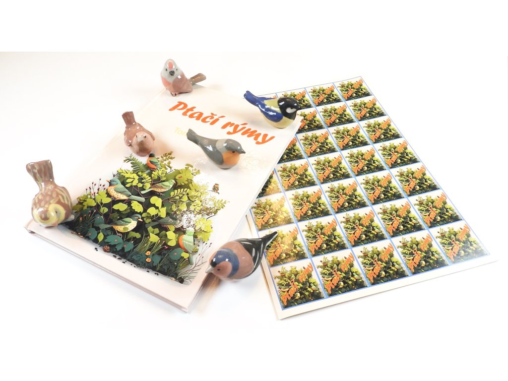 6 ks keramických figurek vybraných ptáčků z knihy