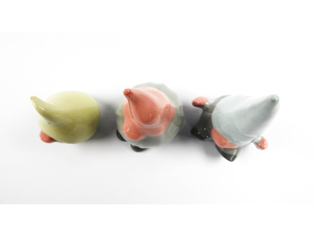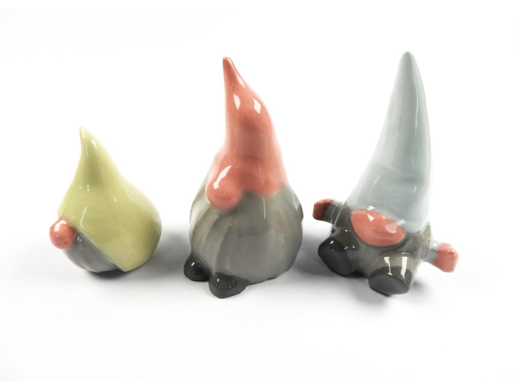 Tři keramické figurky skřítků, v cenově výhodné sadě.